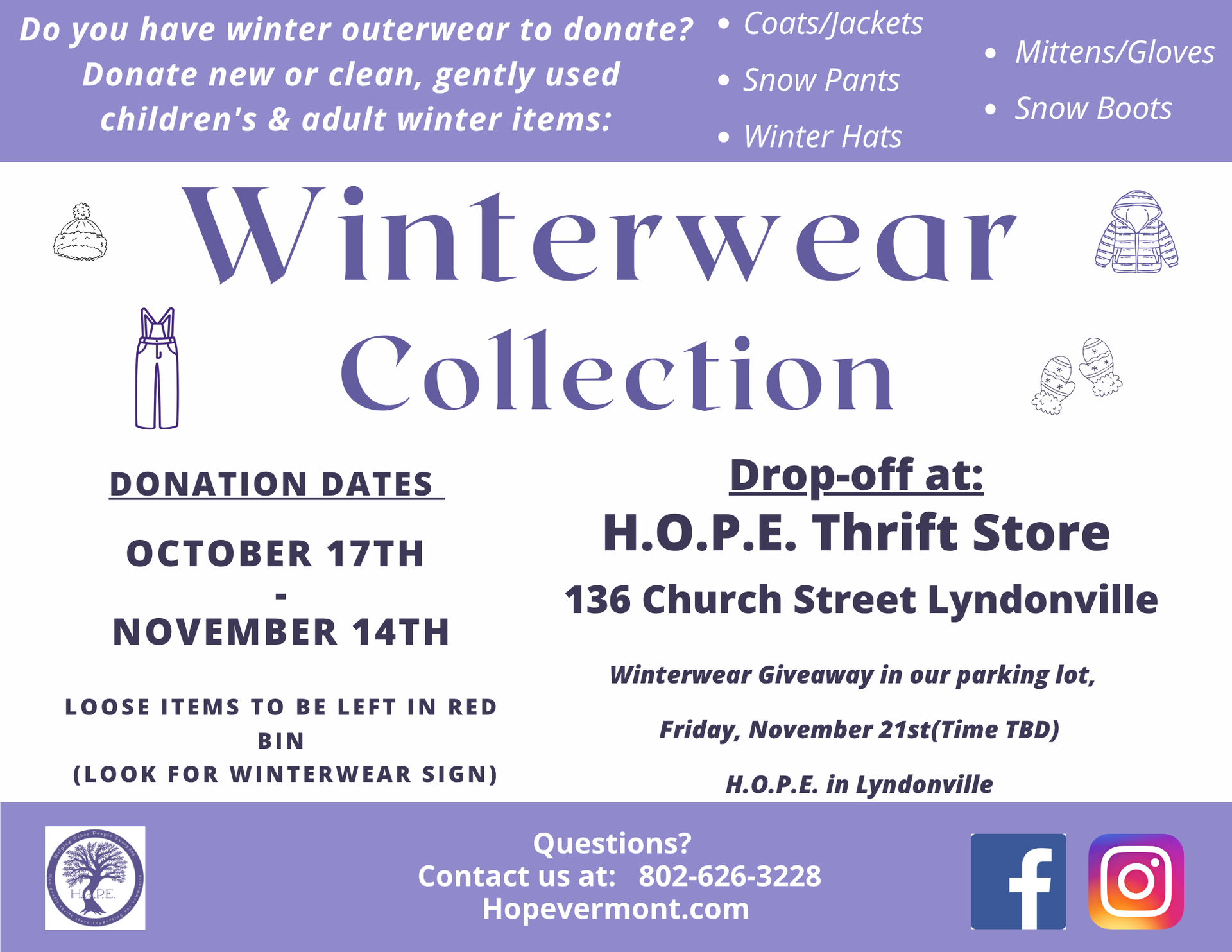 We want to make sure that every child is dressed for the appropriate season. Our children's clothing voucher, makes sure children are warm in the winter, and dressed appropriately for school or the other months between.